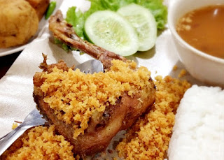 Bahan-bahan yang dibutuhkan : 1 kg ayam Bahan untuk ungkep ayam 4 siung bawang putih 3 siung bawang merah 2 ruas kunyit 1 ruas jahe 2 ruas laos 2 sdt ketumbar 1 butir kemiri Daun salam Serai secukupnya 1 sendok makan tepung beras 2 sendok makan tepung tapioka 1 butir telur Kuah bumbu ungkep Garam secukupnya Air secukupnya baca juga Resep Masakan Ayam Pedas Manis Cara membuat : Pertama tama siapkan ayam dan cuci ayam sampe bersih Kedua, haluskan semua bumbu kecuali serai dan daun salam Lalu tumis semua bumbu dengan sedikit minyak hingga harum Selanjutnya tambahkan air secukupnya Kemudian masukkan ayam yg sudah di cuci Langkah selanjutnya tambahkan garam sesuai selera, Kemudian tunggu hingga beberapa saat hingga ayam benar benar matang dan bumbu meresap kemudian goreng ayam Yang terakhir , semua bahan kremesan di campur hingga adonan encer kemudian goreng di minyak yg panas